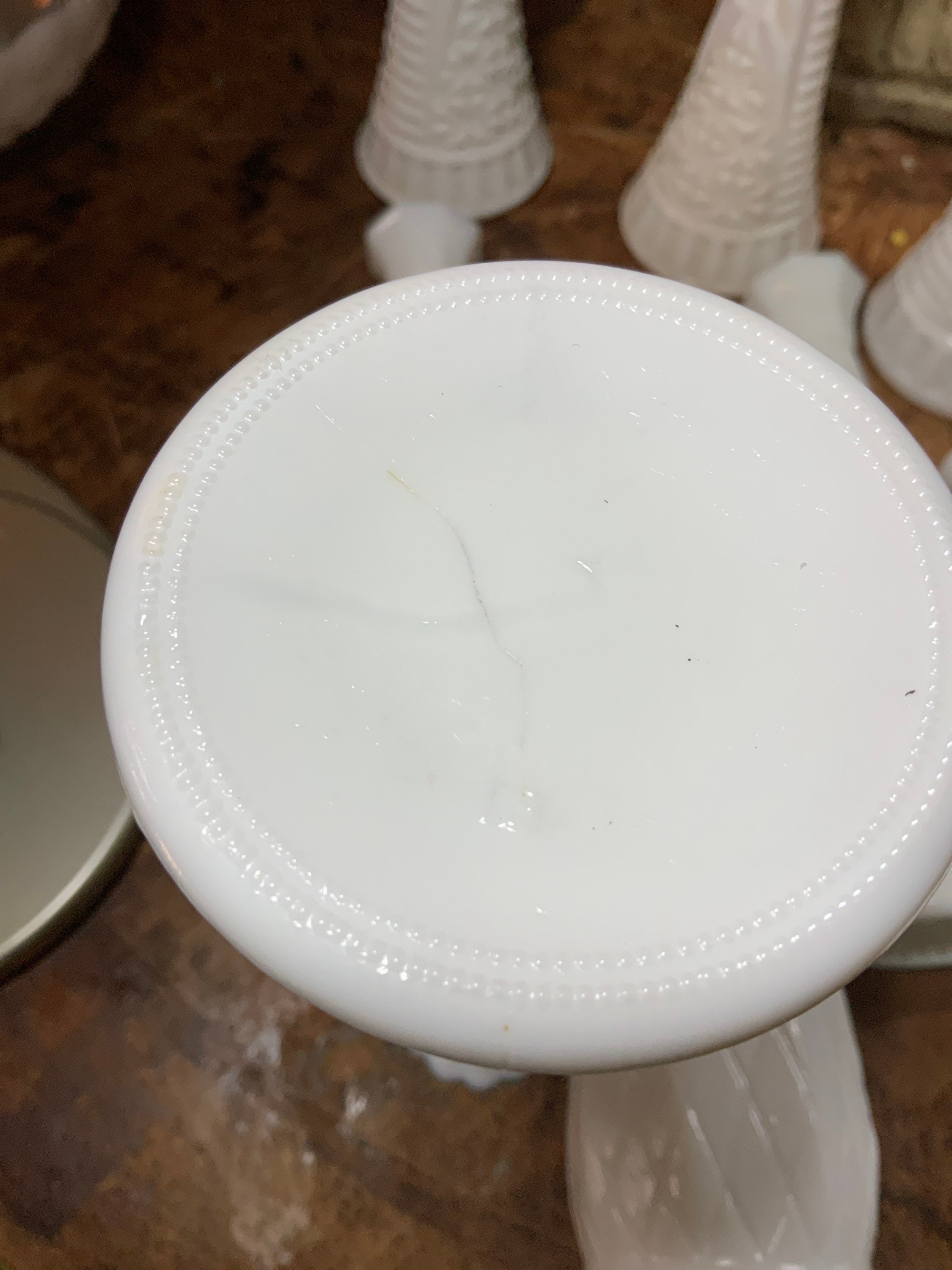 No cracks,hairline,breaks,chips or crazing except one shown in photo 9,looks like hairline,but no leaking.