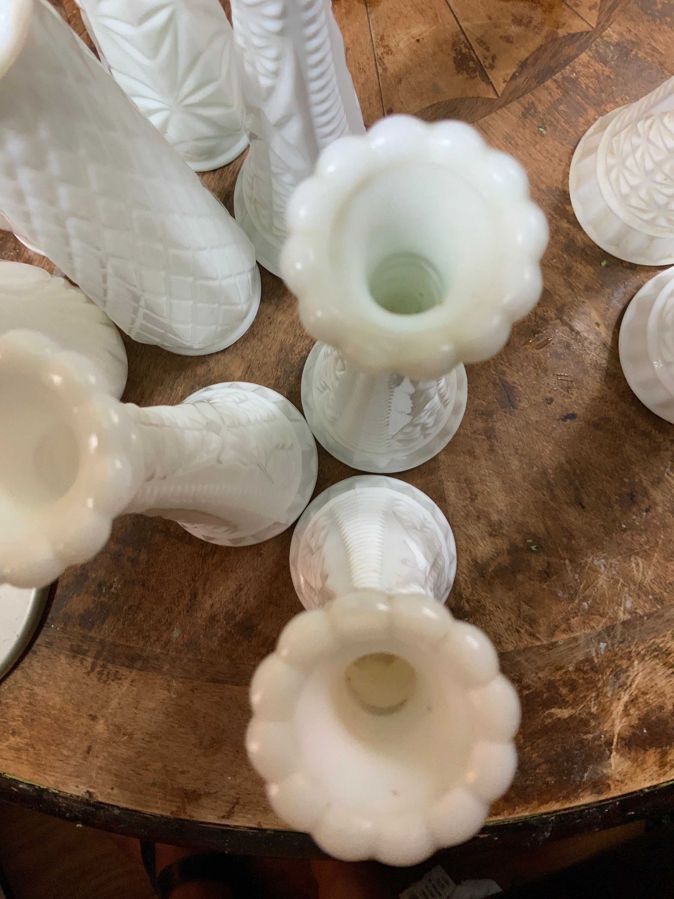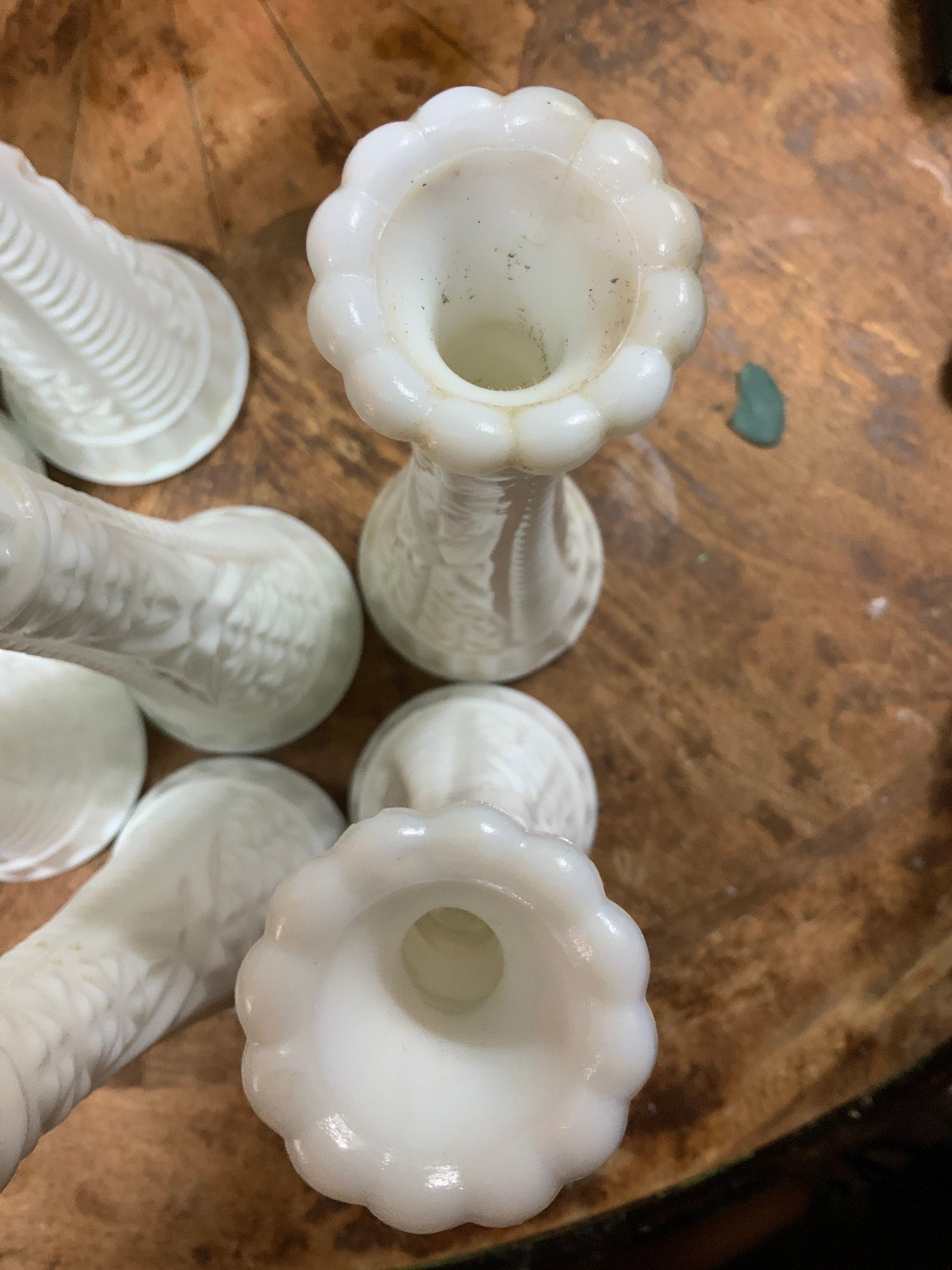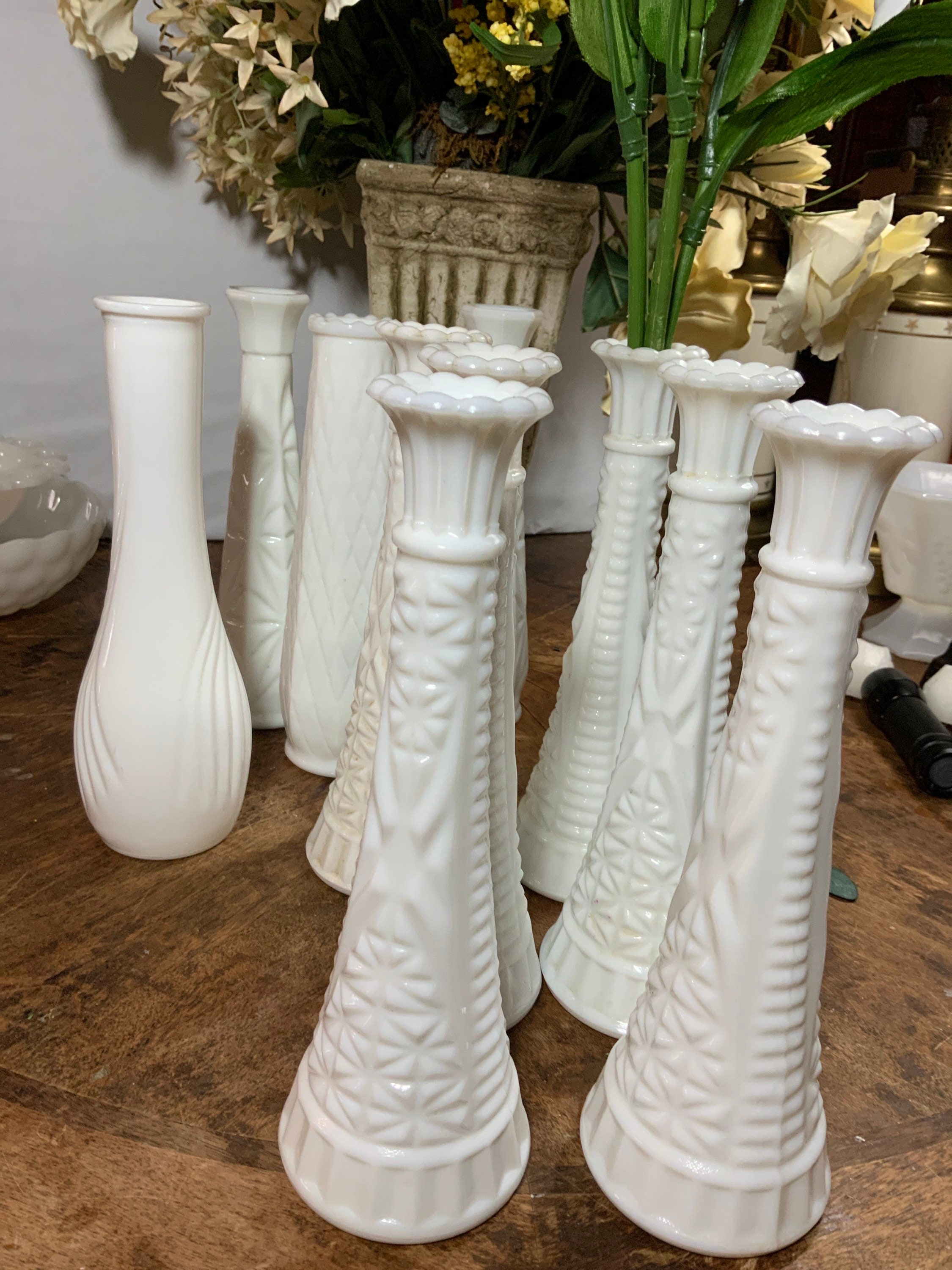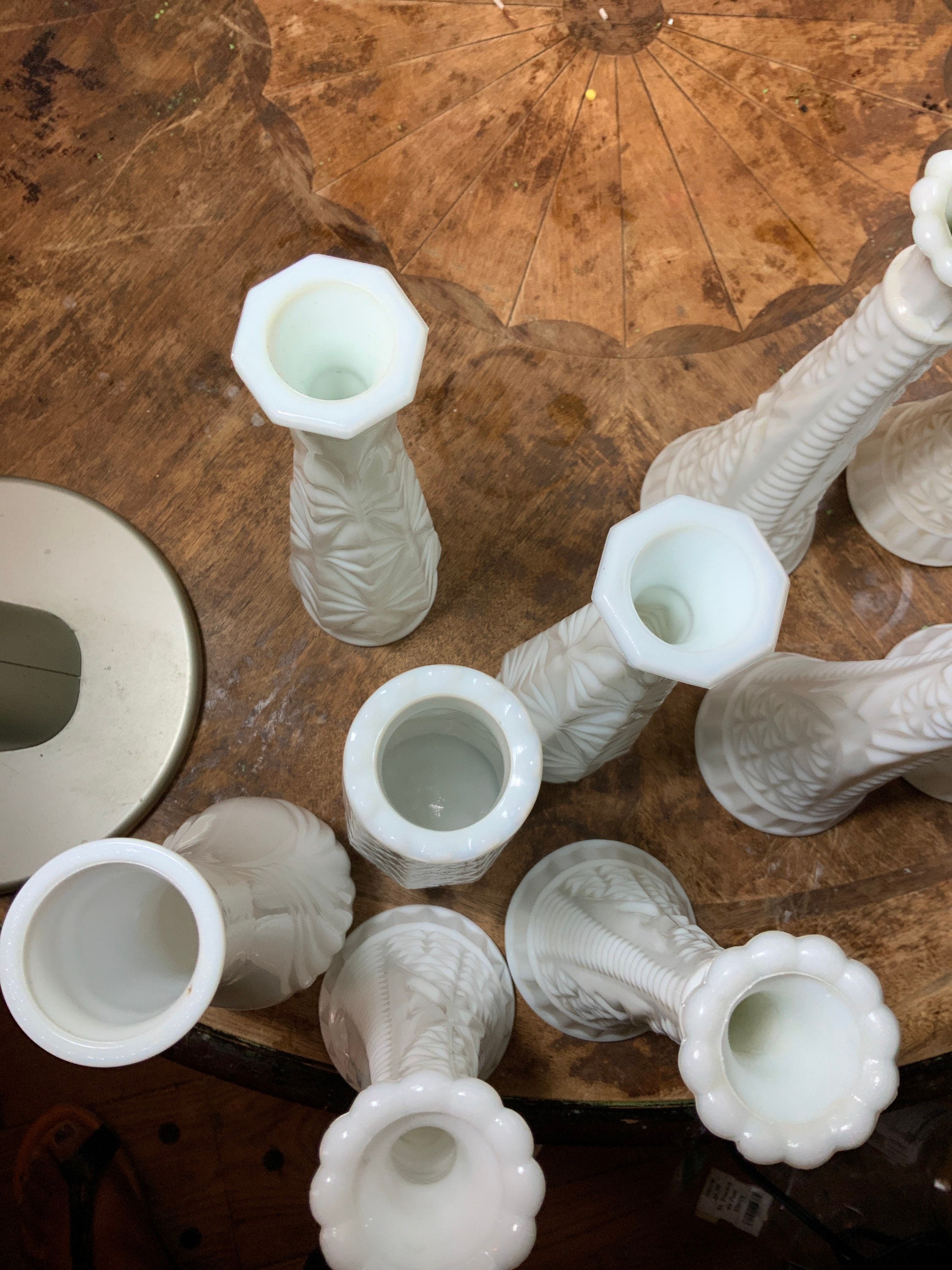 Listing is for a set of 10 bud vase or candlestick holders with 4 different styles , but similar Art Deco patterns from the sixties,that will make beautiful wedding shower,baby shower, wedding reception or wedding centerpiece , luxury and delicate displays as flowers bud vase or candlestick light on each guess table for summer wedding or christmas party reception. They will make beautiful old school romantic feeling in the modern world. They can be used as pair or individually for any occasions.
