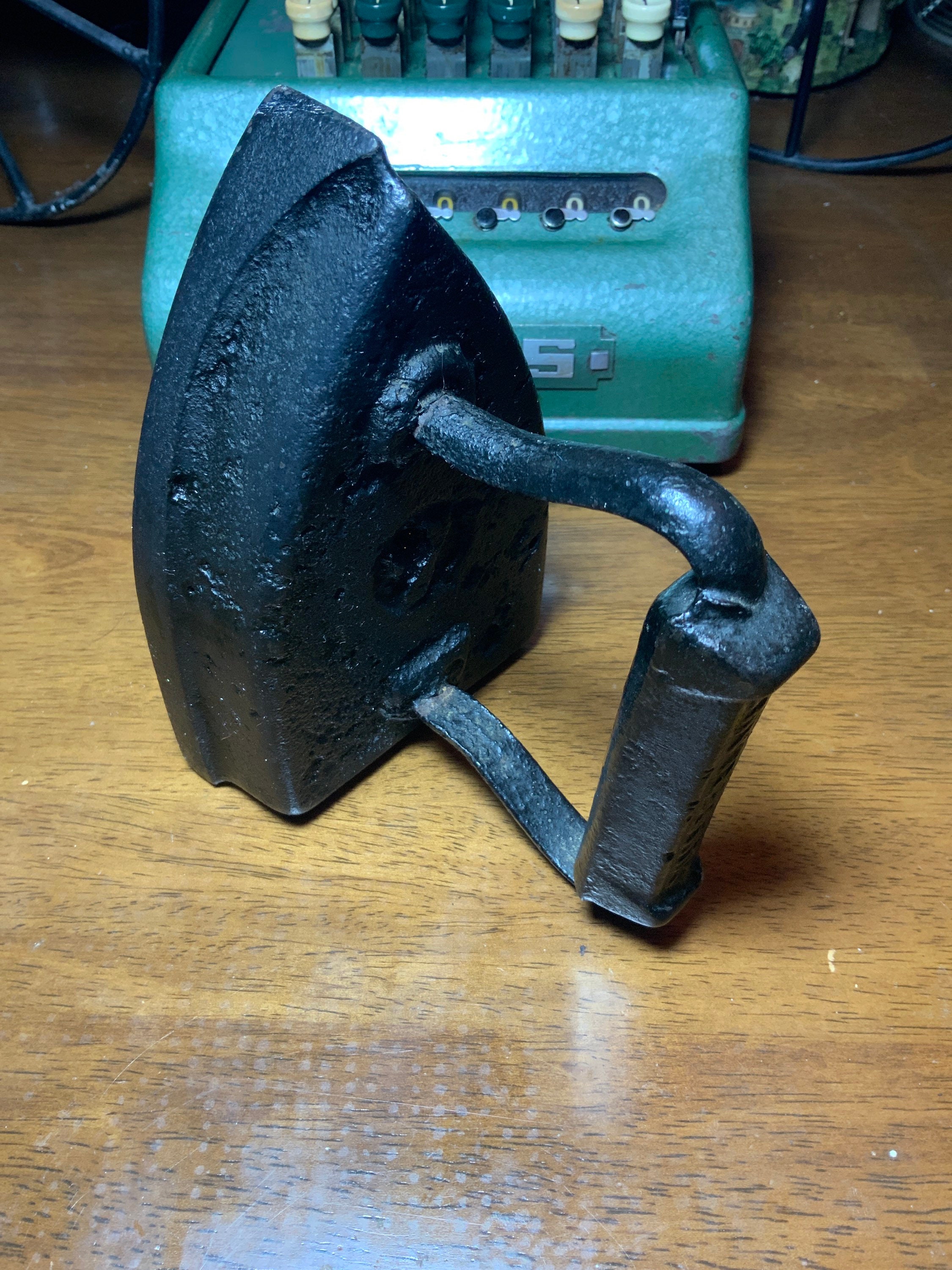 Listing is for one antique solid cast iron saddle/ flattened Iron #7, approximately 6 lbs &46 oz by Cumberland manufacturer 1930s circulation with Cumberland raised embossing trademark on handle top bar. This forgotten relics with gorgeous triangular looks of multi decks ship, providing creative multi uses around the house, primitive country home decor, clothes or fabric flattening ,heavy paperweight,Doorstops,Book End,even muscle weight lifting, fan companionship. It is nice to collect all sizes of antique cast irons, useful necessities for many generations.It comes handy to have 3 or more in a car when go camping, using as hammer,campfire stakes for cooking with cast iron pot , emergency tent holders when the ground too soft to hold in ground stakes. Once upon time, at cabin rental gatlinburg, parking lot was steep, no rocks available, I used of cast iron saddle/ flattened iron behind the tires.