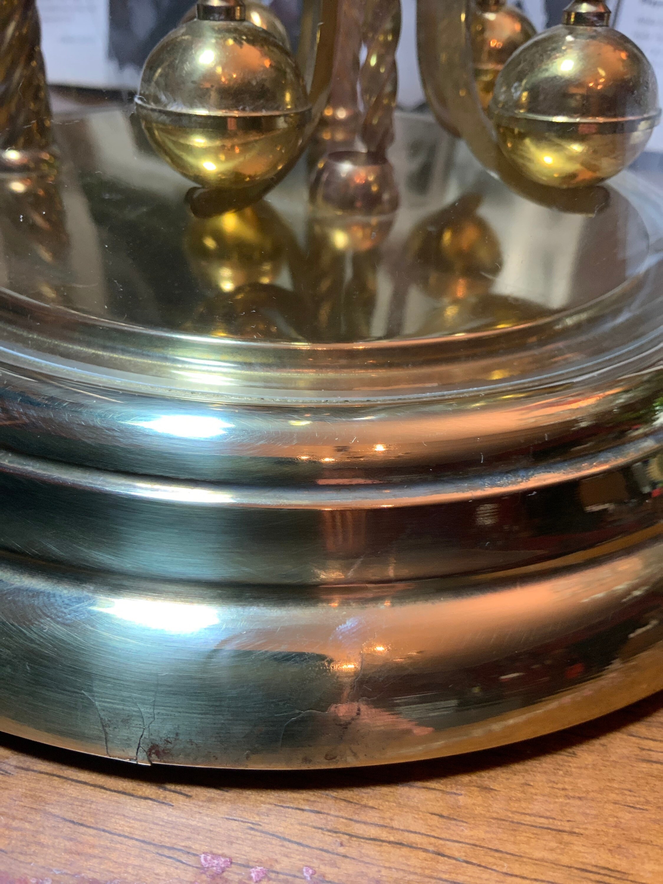 1. brass base with the clock and attached pendulum with pendulum locking mechanism