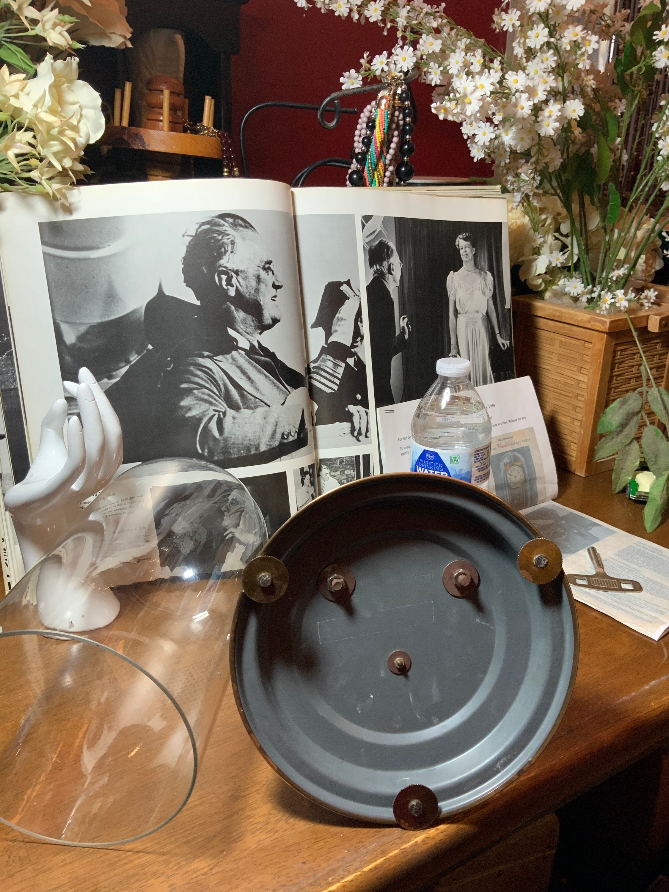 I cleaned elderly home after school in High School. One house,I came a cross the elderly owner, who had the clock near by her beautiful bed. I was told to leave the clock alone. A smile with sadness, she said, “My husband,Scotty, brought it home as our anniversary gift., we got married a week before his deployment to Germany,.. Oh I am a mother to 3 baby boomers…”