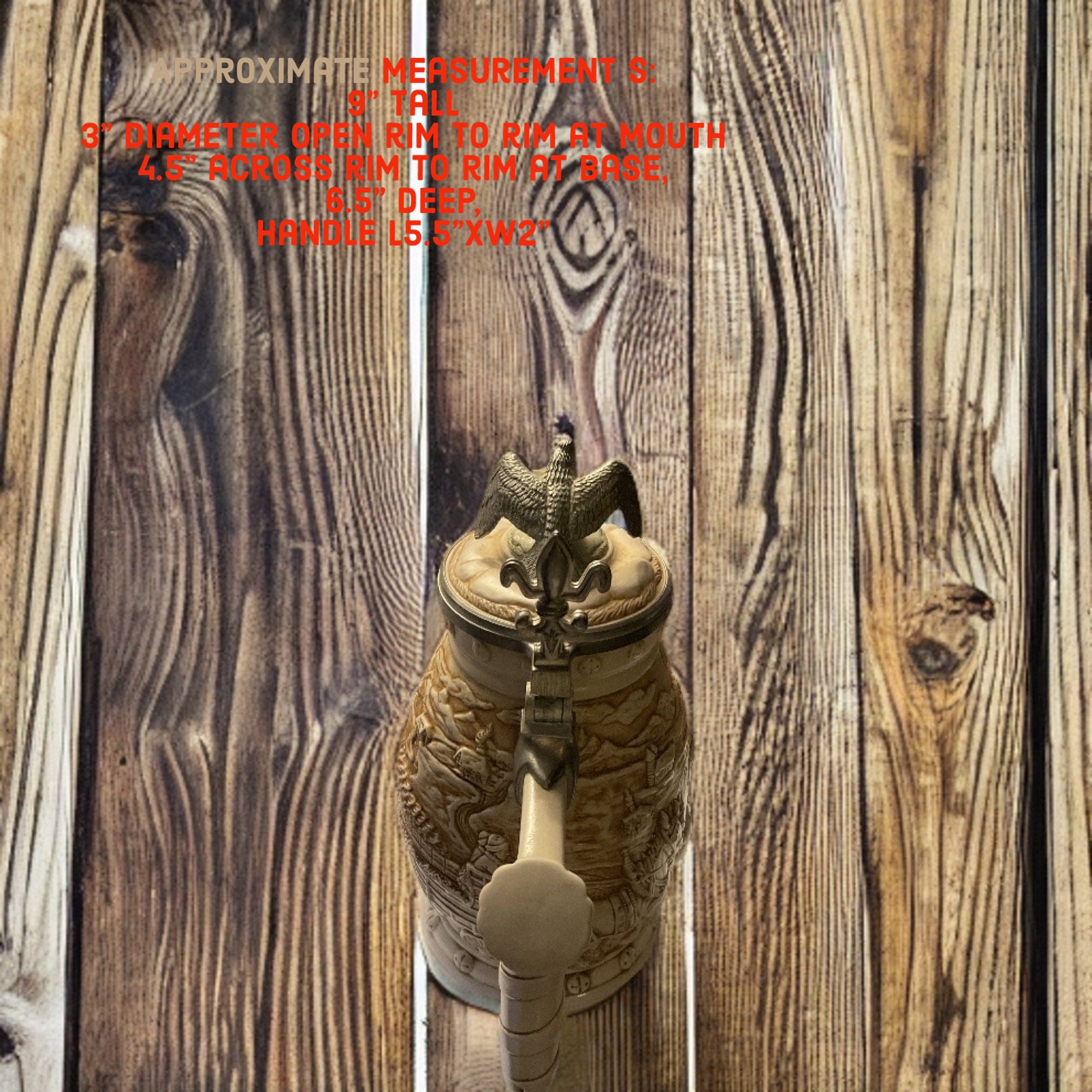 Stein beer mug have been well cared for as part of ceramic stein beer mug collection . I am no longer hosting socially ,as I can no long drink due to chronic pain treatment, so decided to part all over 25 years collectibles.