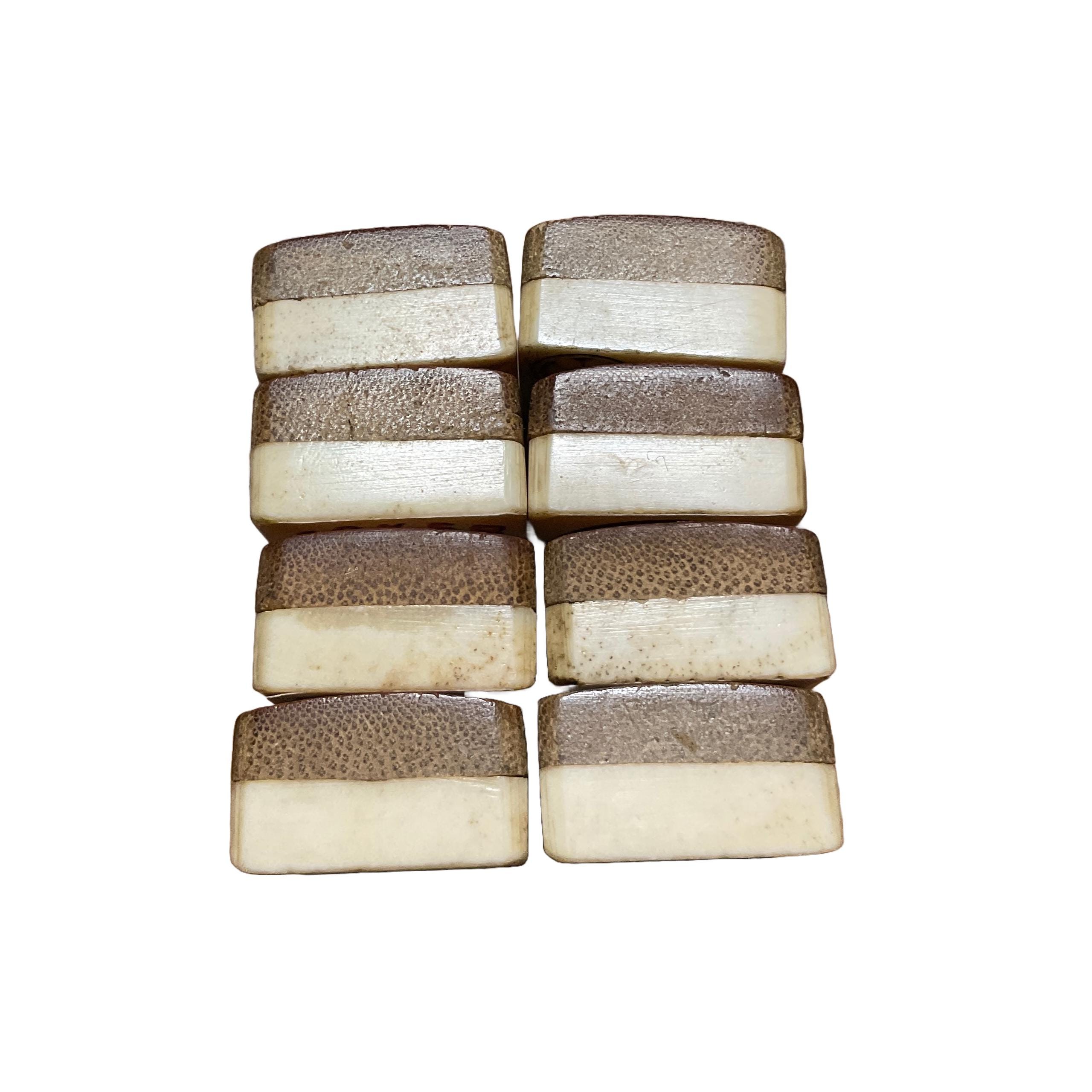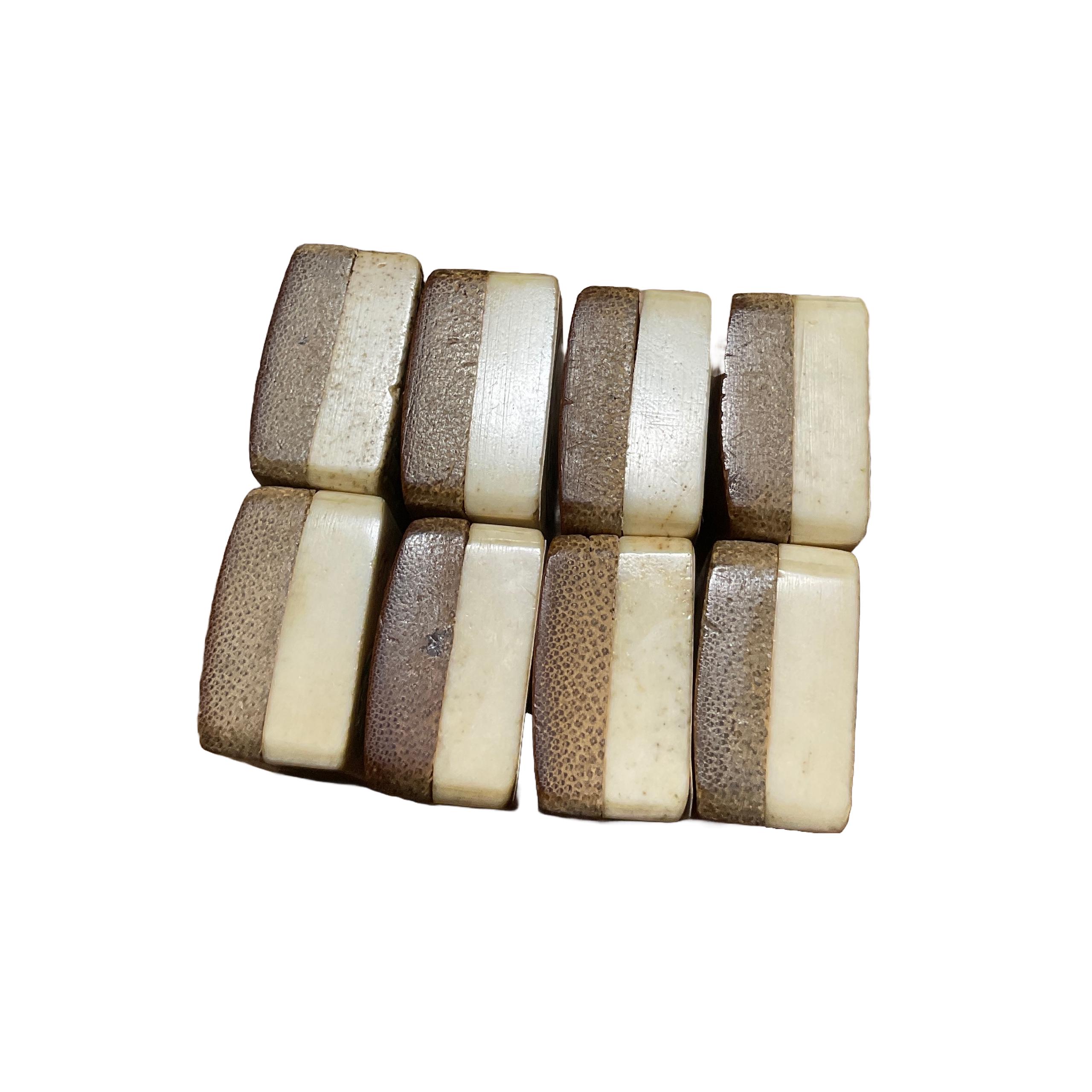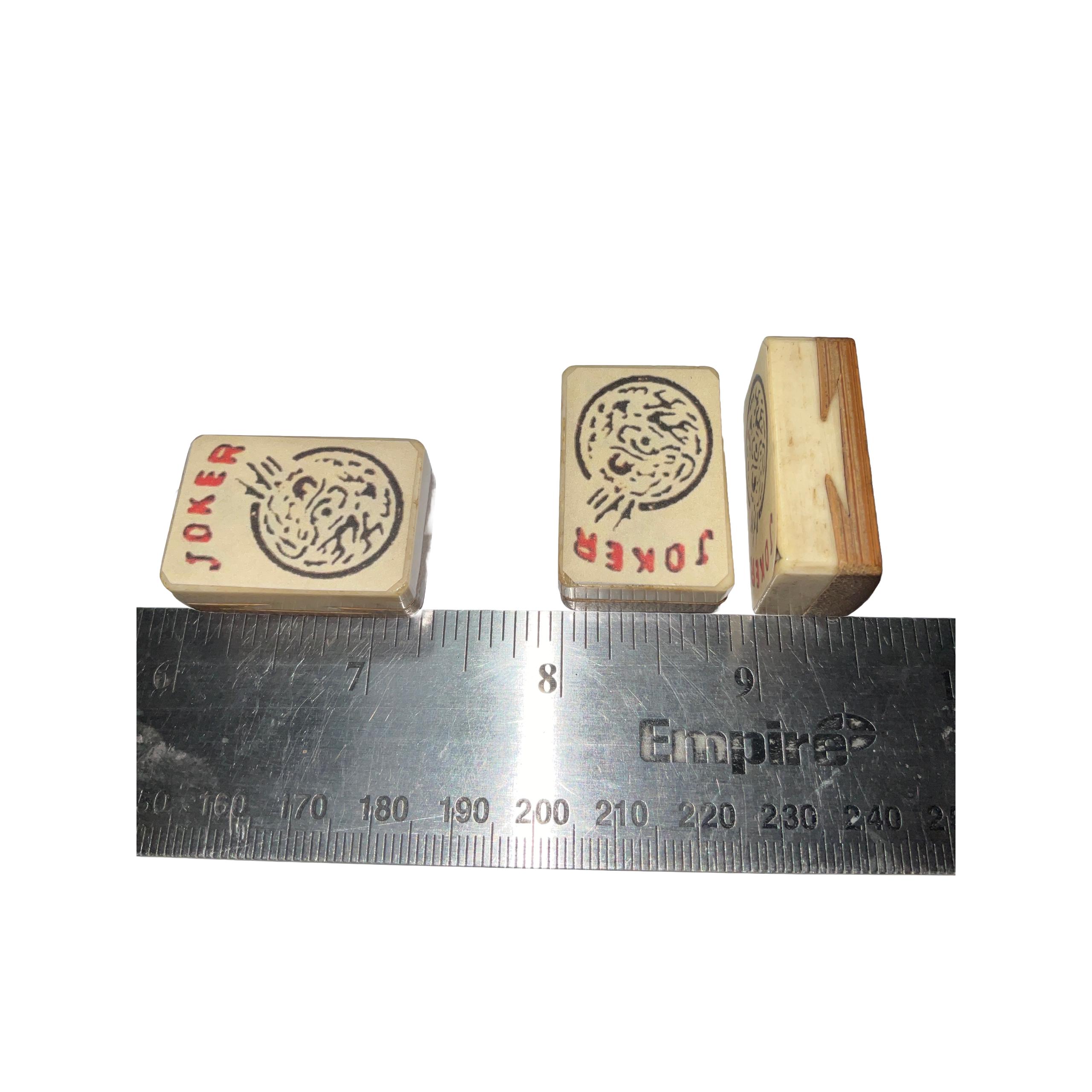 All 8 tiles were taken from the authentic Mahjong set from the 1920s that have dark walnut bamboo backing and thick cow bone top. To maintain the elegance and the authenticity of Joker replacements, each tile is topped