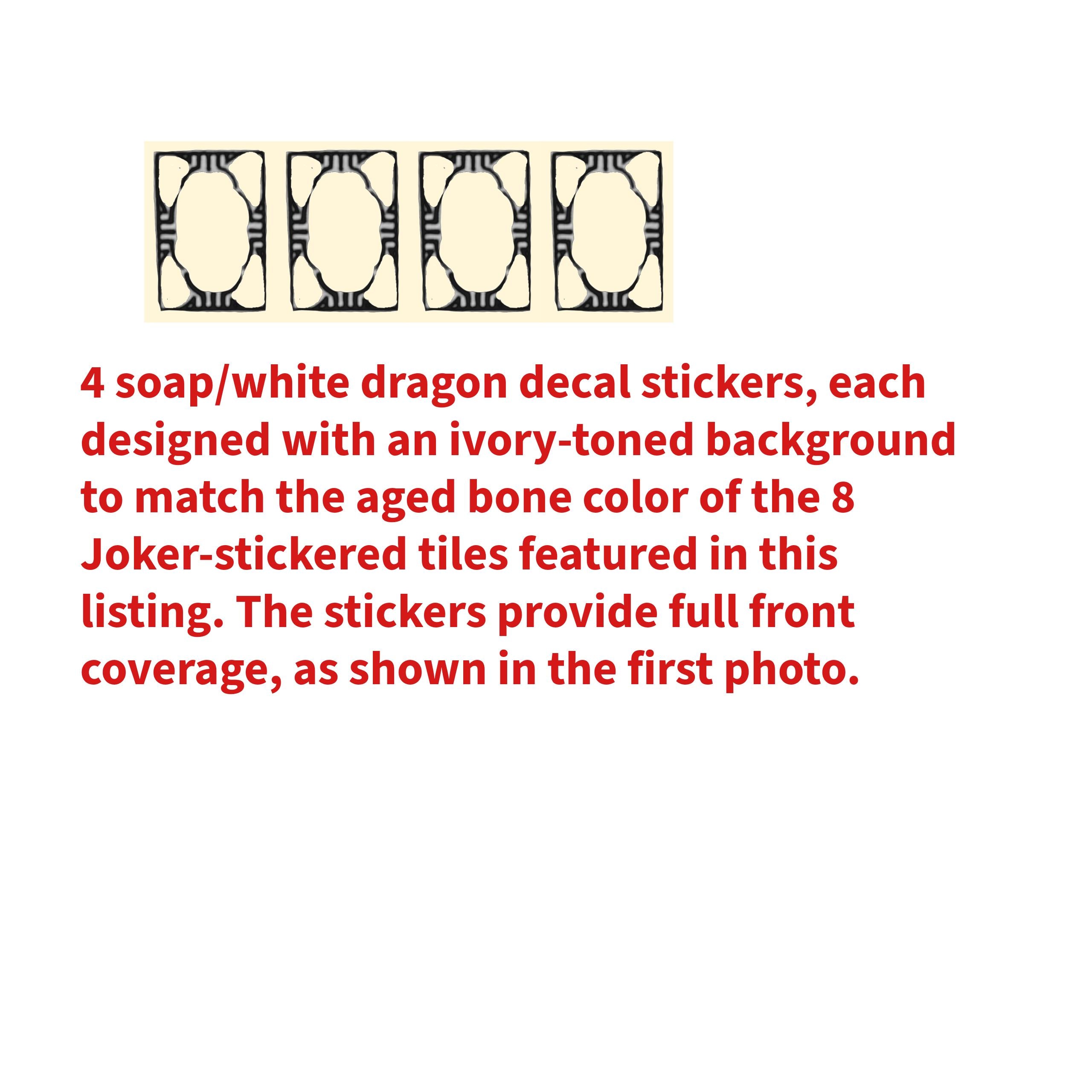 I’m proud to offer this set of 8 Bamboo & Bone Mahjong Joker-stickered tiles, paired with matching soap/white dragon stickers—crafted in a vintage-style design for American Mahjong gameplay.