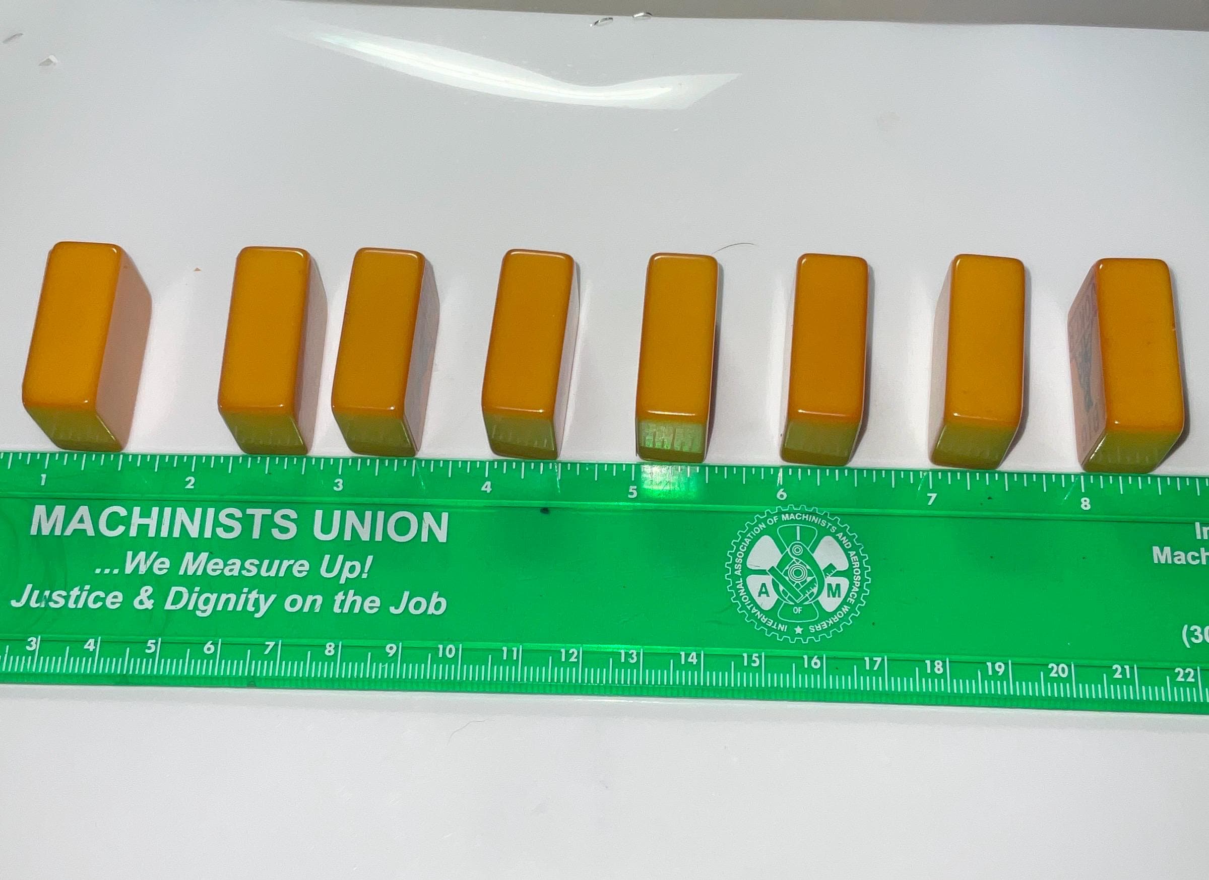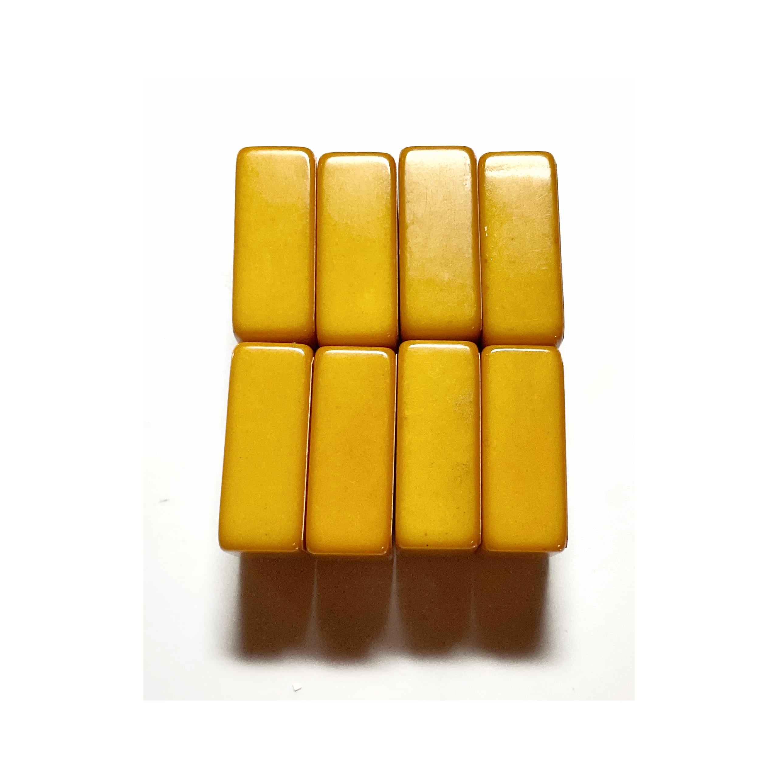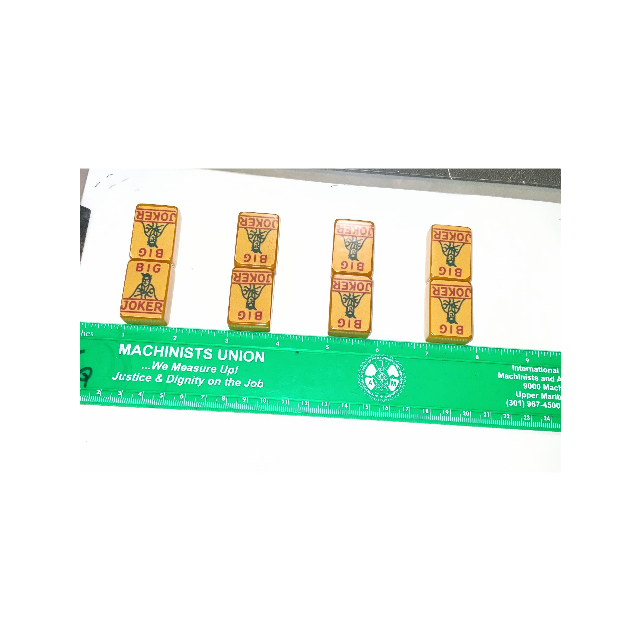 I’m proud to offer a rare set of 8 Royal Standing Pheasant Mahjong replacement Joker tiles. Each tile is crafted from opaque “apple juice” Bakelite and topped with a high-gloss vinyl sticker featuring a detailed replica of the original Royal-manufactured Joker decal, set against a satin-sheen golden apple juice background. These tiles are thoughtfully designed to blend beautifully with aged Bakelite sets—perfect for completing your cherished vintage Royal Standing Pheasant Mahjong set for American/National Mah Jongg League gameplay.