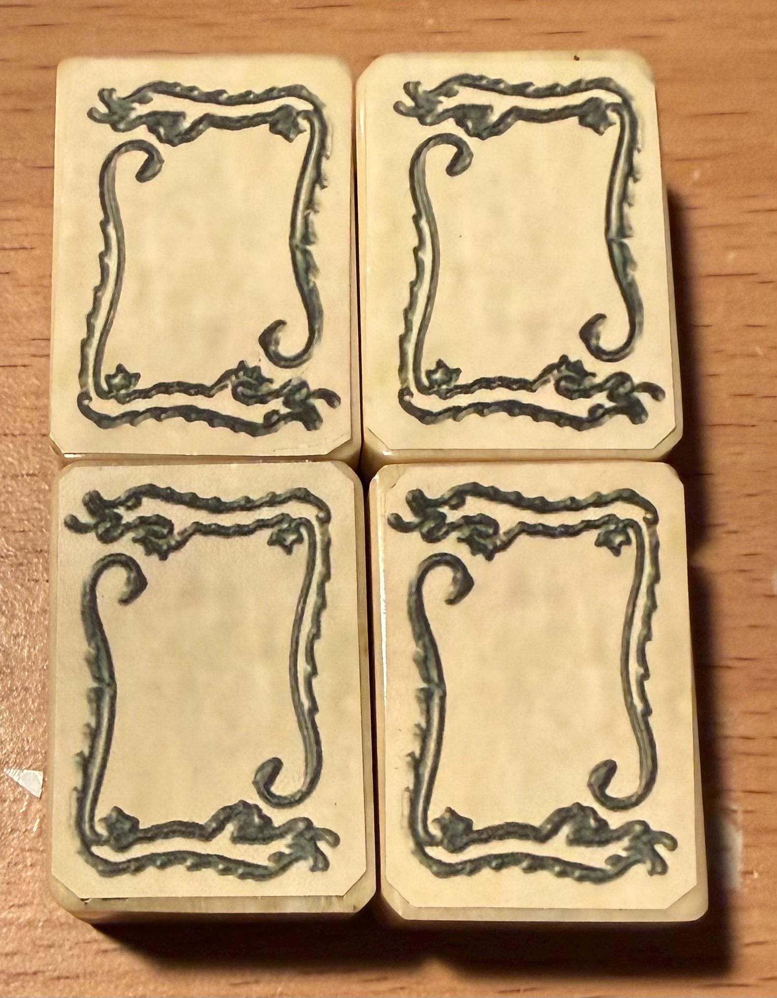 I’m proud to offer this set of 4 Bamboo & Bone Mahjong soap-stickered tiles, crafted in a vintage-style design for American Mahjong gameplay.
