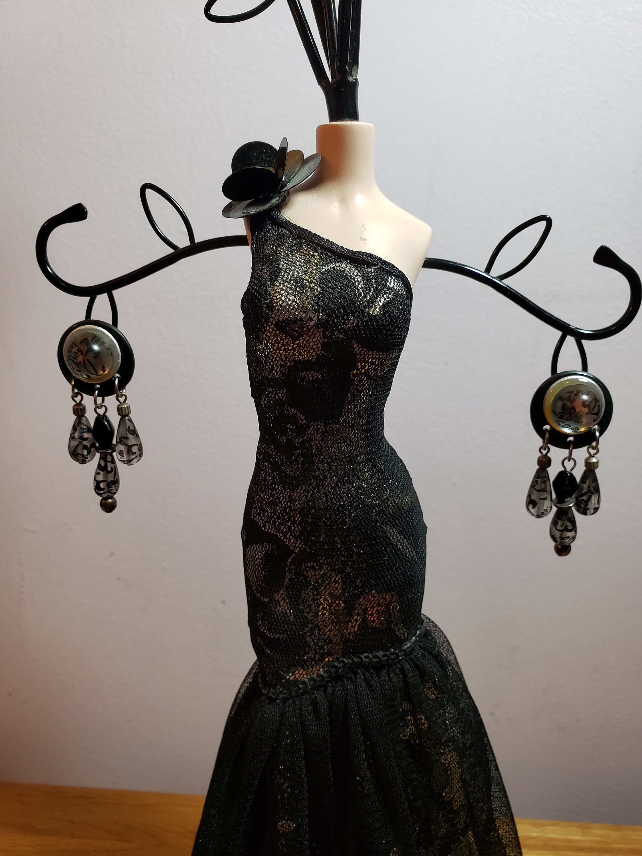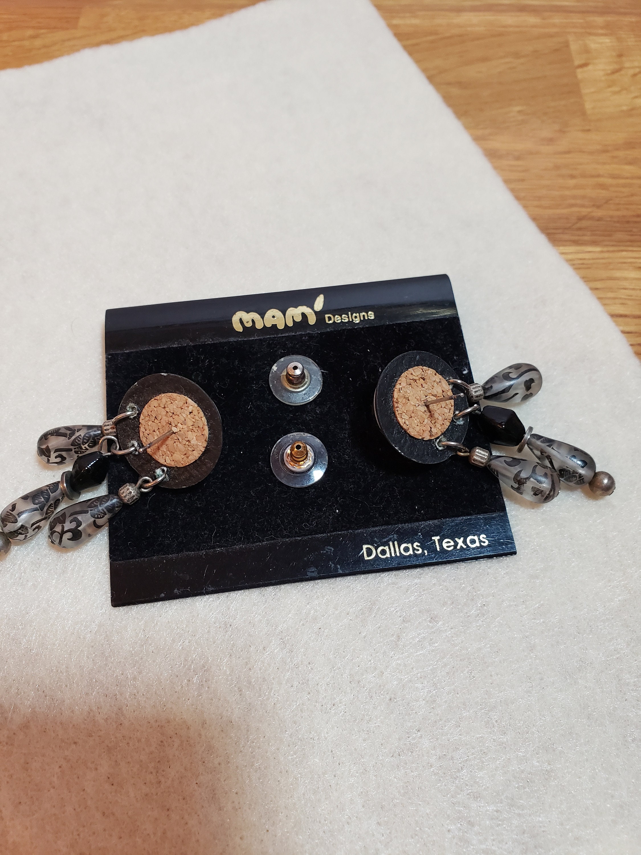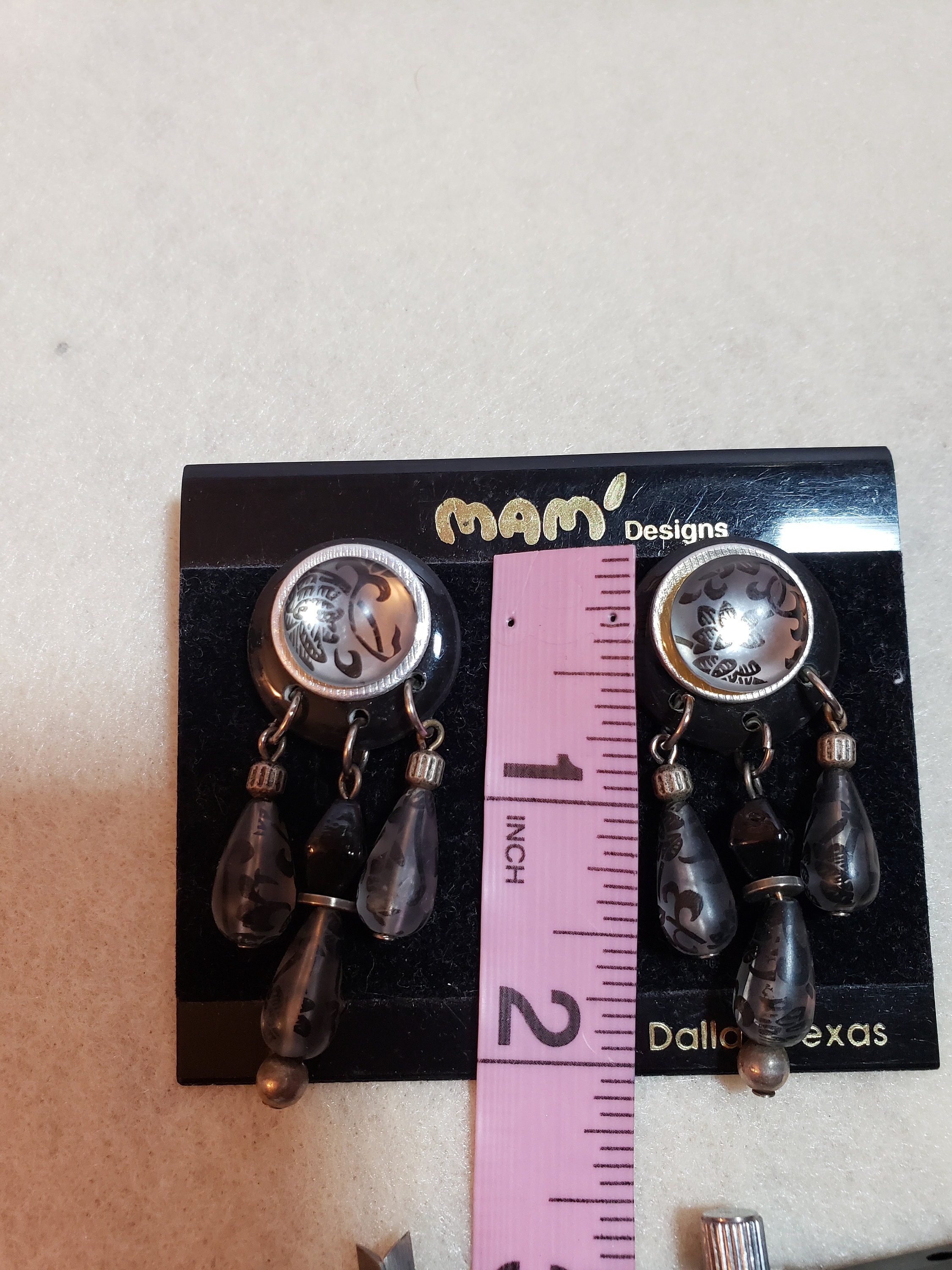 After 3 decades, MAM'DESIGNS Dallas,Texas closed production. Rare,very collectable, very versatile earings 2" long,.75" wide,15x7 mm per each black and silver teardrop,15x15mm tops center Acrylic stone.Please review pictures as part of description , in New Vintage condition