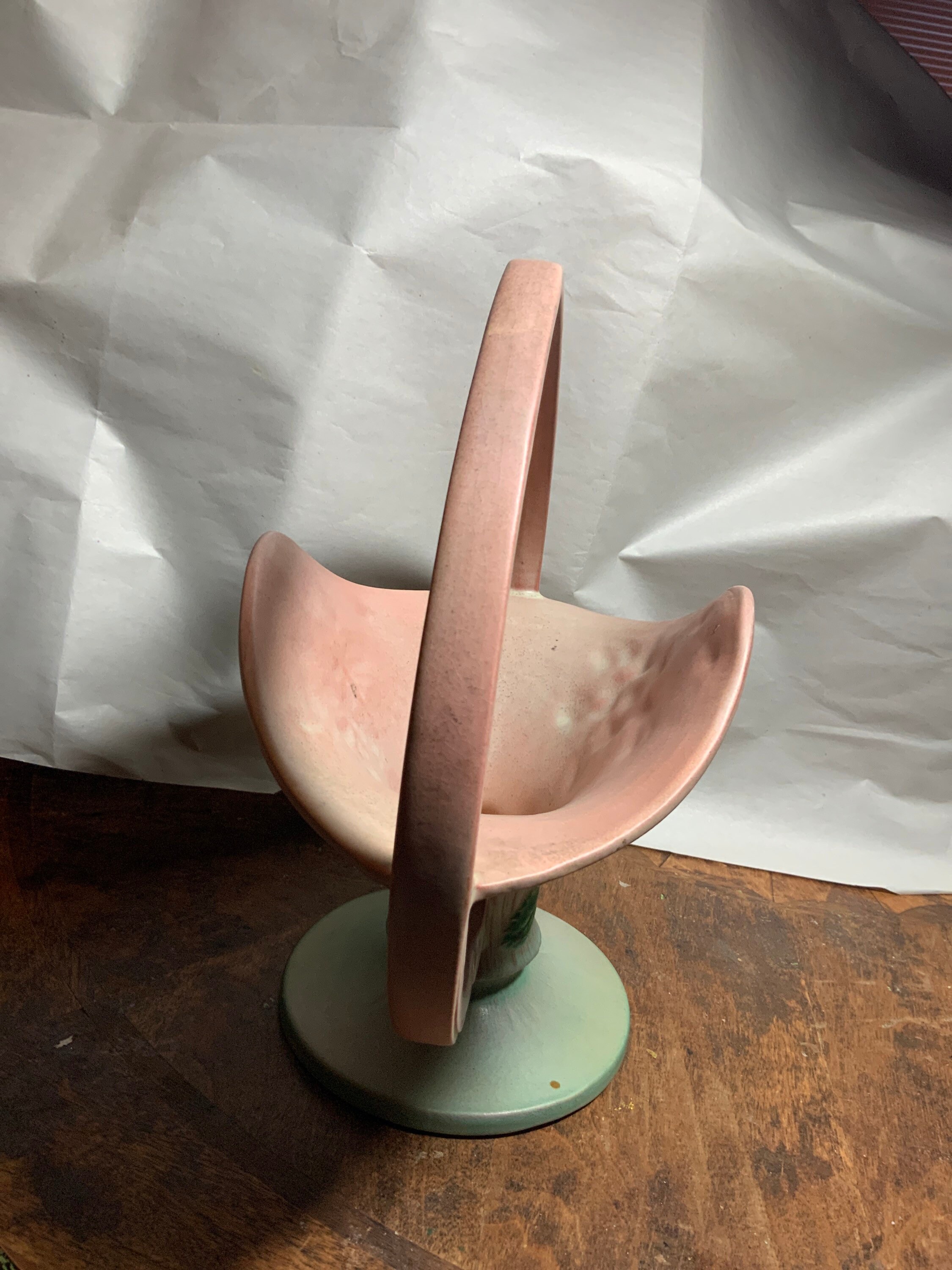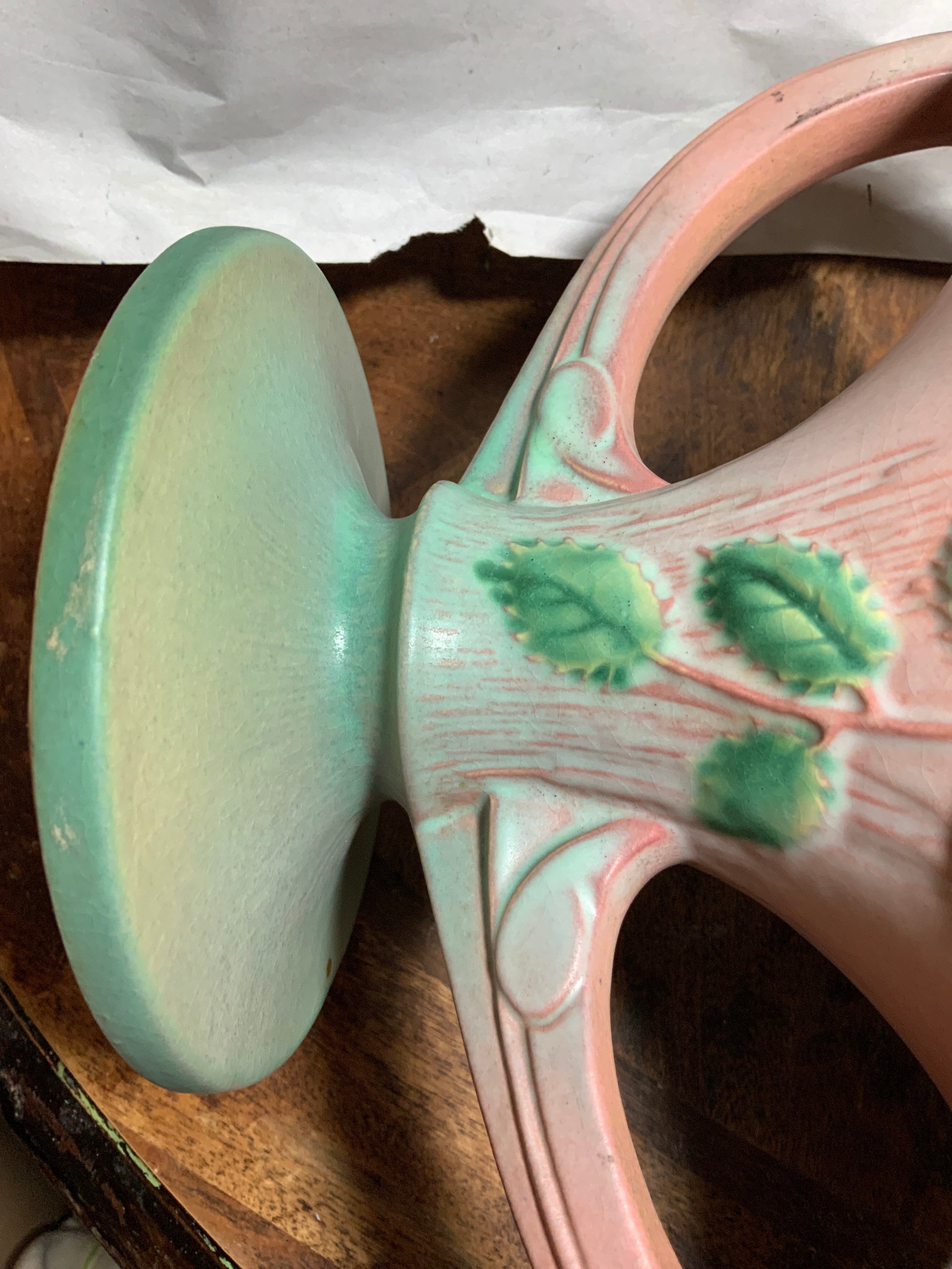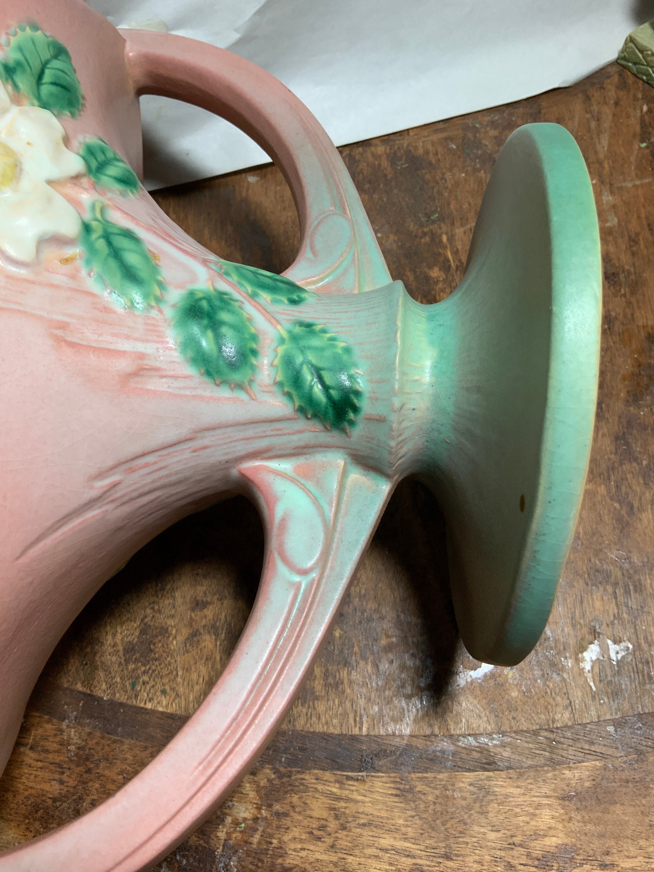Beautiful artsy example of Roseville, would make excellent addition to anyone’s vintage fine pottery collection,either for beautiful gift, add or start collection of rare Roseville piece,where the value would never go down for many generations to come. Plus it is gorgeous vase with either fresh or dried flowers centerpiece on dining tabletop.